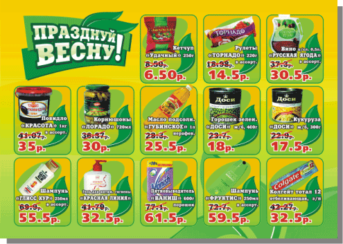 Листовка — бумажный лист, как правило формата А4, запечатанный с одной или обеих сторон, в одну- или несколько красок, рекламного или информационного содержания. Предполагает несколько более высокое качество полиграфического исполнения, чем у бланка.