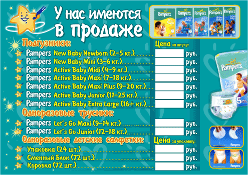 Ценники — печать на заказ в Томске — Pampers
